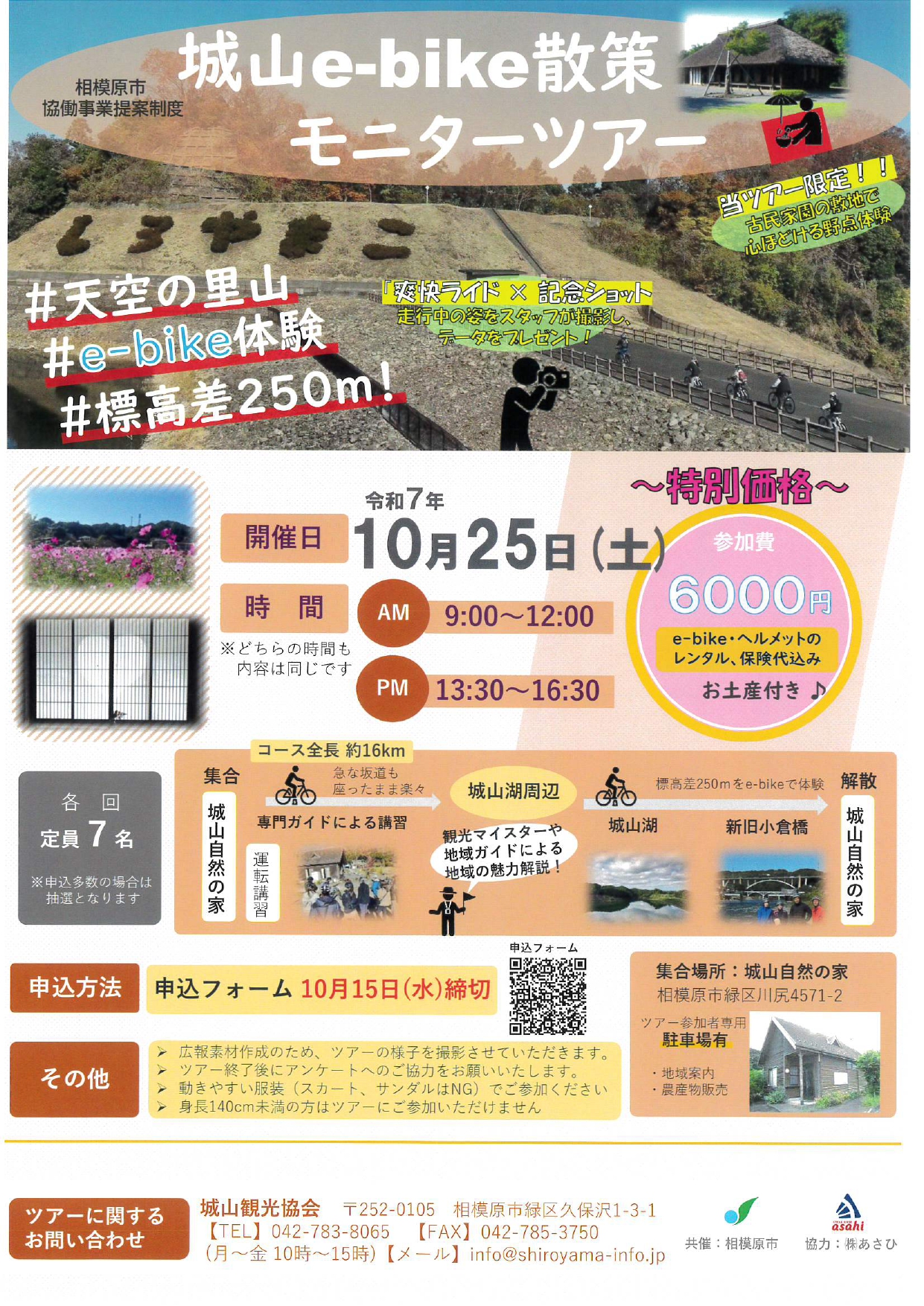 令和7年10月25日(土)開催!城山e-bike体験ツアー(モニターツアー)参加者募集!!