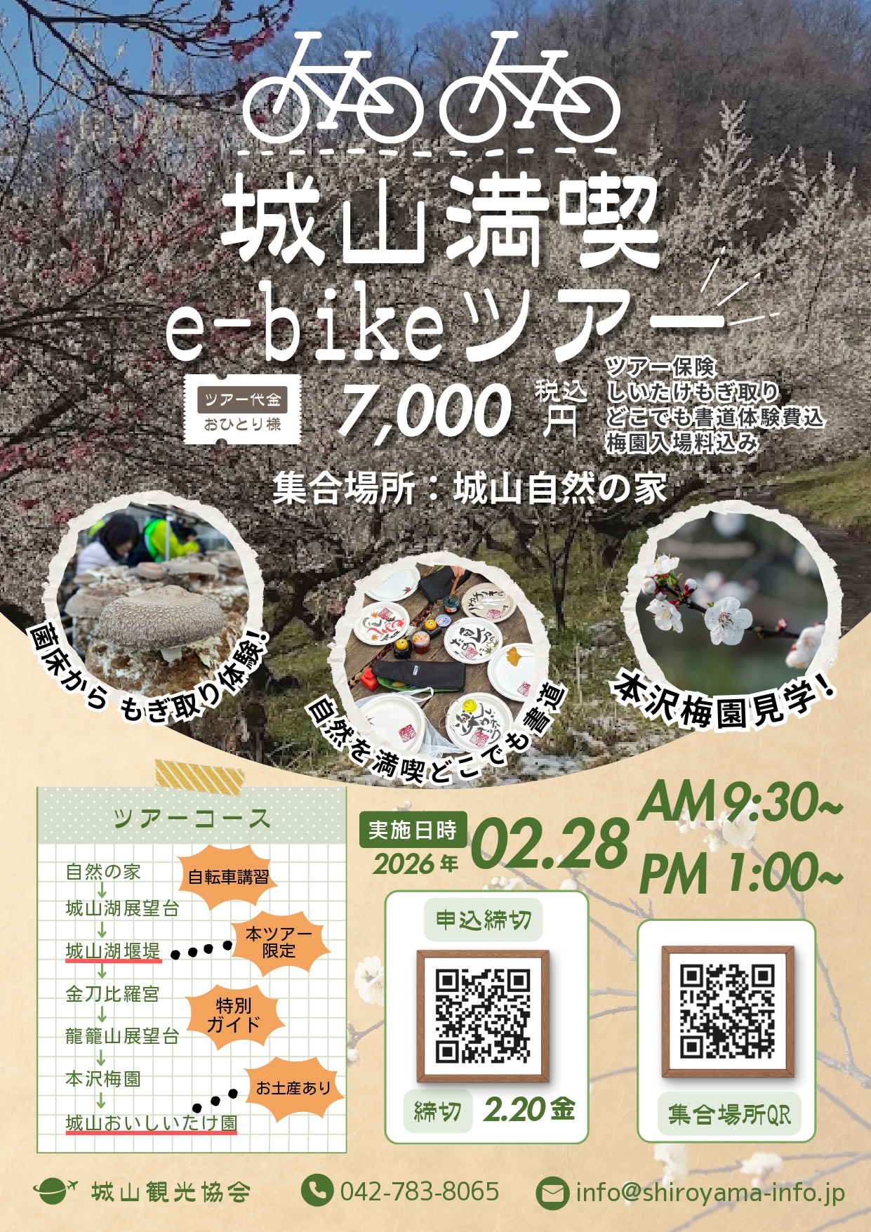 令和8年2月28日(土)城山満喫e-bikeツアー参加申し込み受付中!